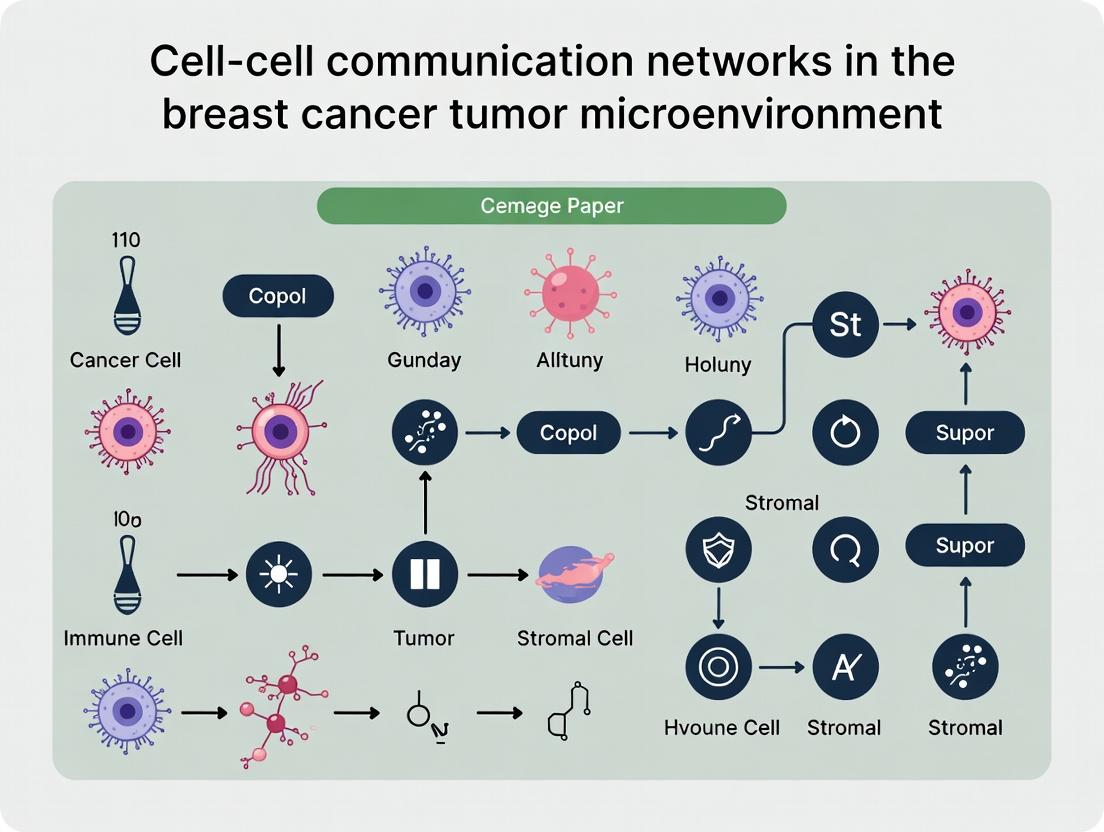 The intricate cell-cell communication networks within the breast cancer TME represent a dynamic and targetable dimension of tumor biology. A foundational understanding of key signaling axes, combined with advanced methodological tools, allows researchers to deconstruct these complex interactions. While experimental and analytical challenges exist, rigorous troubleshooting and validation are paving the way for robust network maps. Critically, comparative analyses reveal subtype-specific communication circuits, offering a blueprint for personalized therapeutic intervention. The future lies in integrating multi-omics network data with clinical trials to develop next-generation strategies that disrupt pro-tumorigenic crosstalk, re-educate the TME, and overcome treatment resistance. Moving from static snapshots to dynamic, patient-specific network models will be essential for translating this knowledge into improved clinical outcomes.