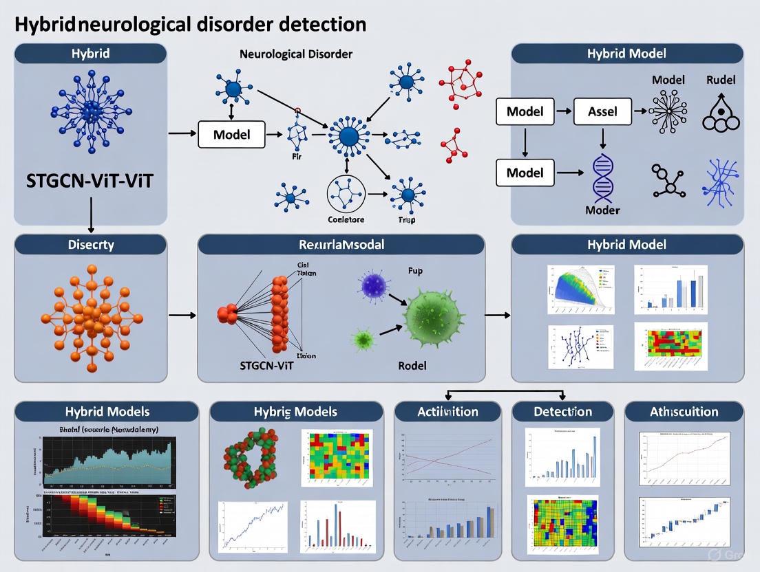The diagnostic challenge in early detection of neurological disorders stems from the complex interplay of subtle anatomical changes, limitations in conventional imaging analysis, and the progressive nature of these conditions. Hybrid deep learning architectures, particularly the STGCN-ViT framework, represent a transformative approach that bridges critical gaps in both spatial and temporal analysis of neuroimaging data. By integrating convolutional networks for spatial feature extraction, graph convolutional networks for modeling temporal dynamics, and vision transformers for global attention mechanisms, these models achieve superior accuracy in classifying Alzheimer's disease, Parkinson's disease, and brain tumors while enabling earlier detection. The experimental protocols and resource frameworks outlined provide researchers with comprehensive methodologies for implementing these advanced architectures, offering promising pathways toward clinically deployable tools that can significantly improve patient outcomes through timely intervention.
